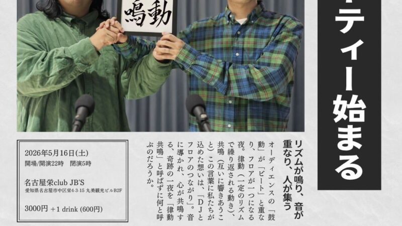 OPEN: 19:00 – 01:00 (*祝日回のため19時スタート...