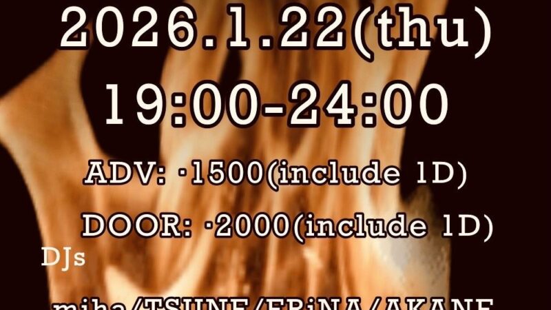 OPEN: 20:00 – 02:00 GENRE: 邦楽 PRICE: DOOR 2000YEN (incl.1D) / ADV...