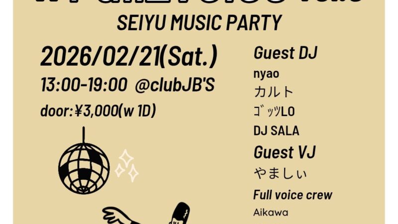 OPEN: 13:00 – 19:00 GENRE: 声優楽曲 PRICE: DOOR 3000YEN (incl.1D) GUE...