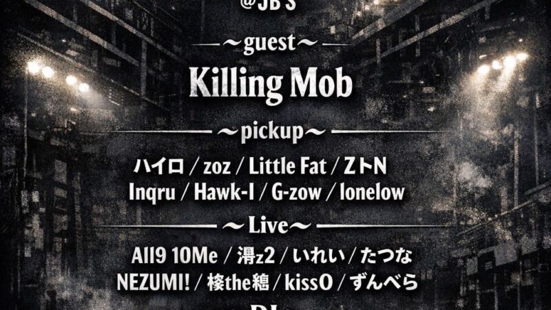 OPEN: 16:00 – 22:30 GENRE: HIP HOP PRICE: DOOR 2000YEN (+1D/600YE...