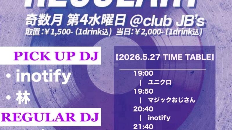 OPEN: 19:00 – 00:00 (*祝日回のため19時スタート...